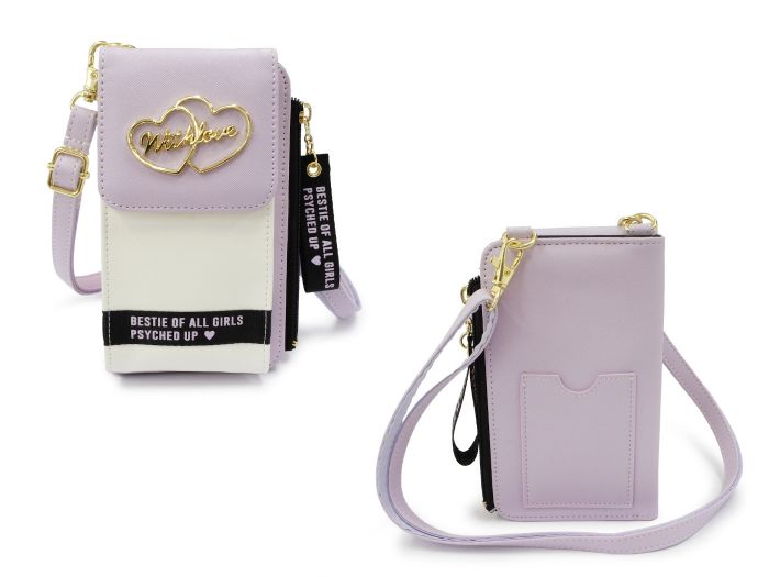 ツインハートタテ型お財布ショルダー パープル スマホショルダー 財布ポシェット 中学女子 小学校 女の子 女子高生 ミニバッグ オシャレ かわいい