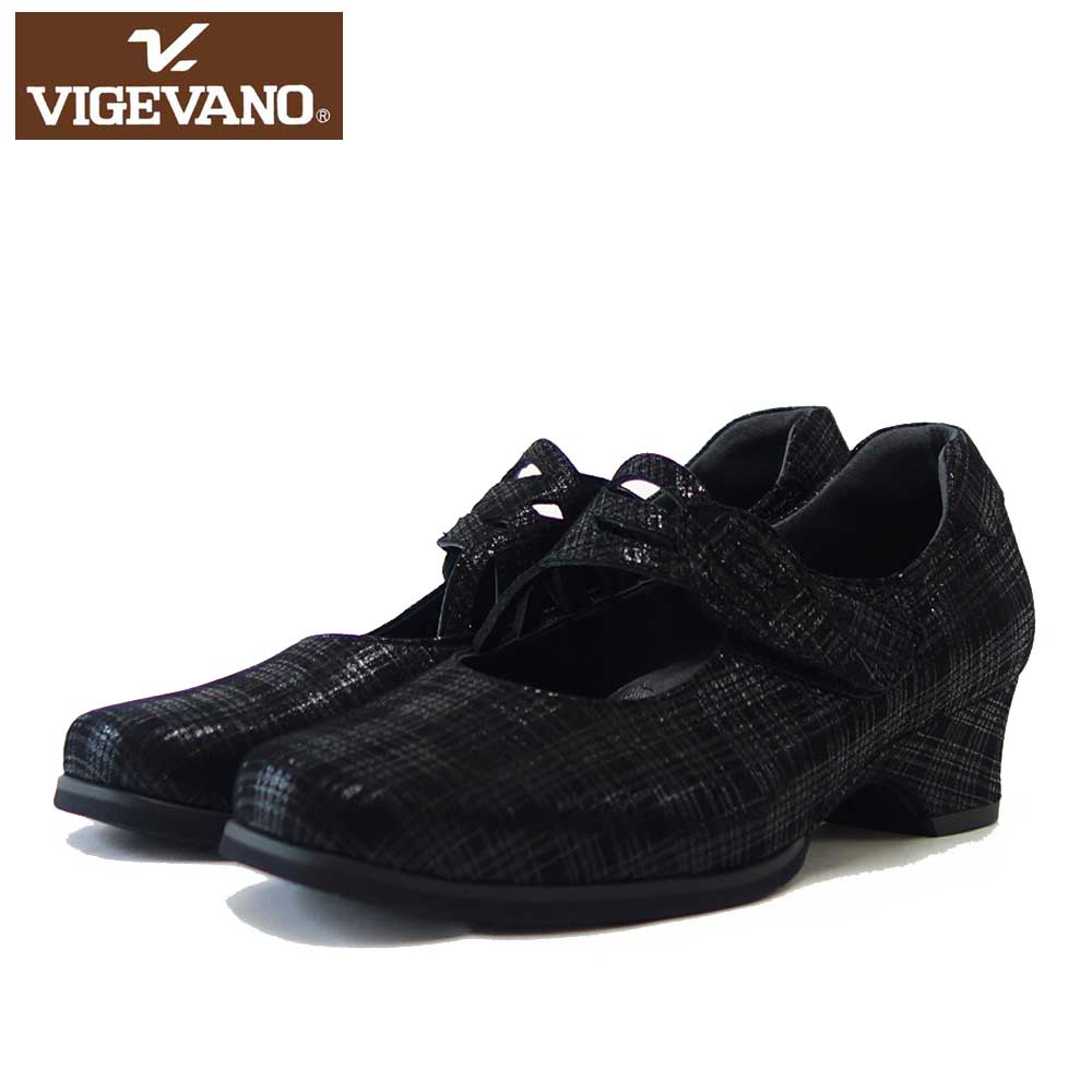ビジェバノ VIGEVANO 1900 ブラック スエード(日本製)ゆったりEEEE ストラップパンプス「靴」