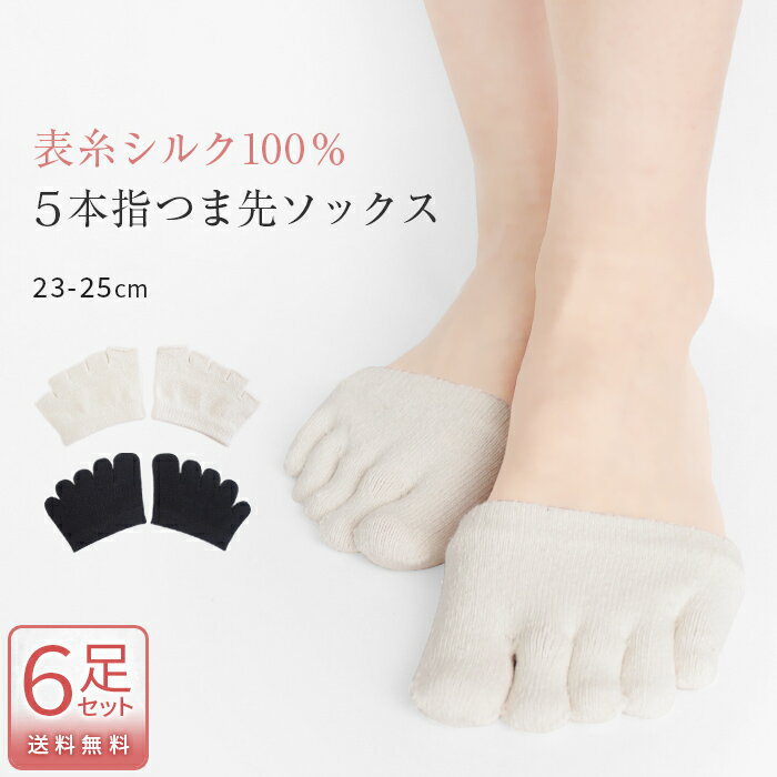 6足セット 5本指つま先ソックス シルク つま先ソックス ハーフソックス 五本指 靴下 ソックス インナーソックス つま先カバー セット シルク100% 重ね履き 5本指 冷え取り 絹 レディース 23cm 24cm 25cm 夏用 冬用 at*2