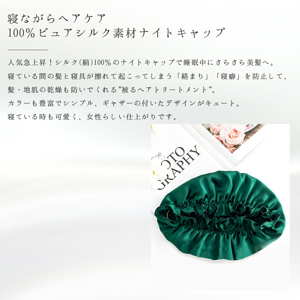 【最大15%OFFクーポン配布中】ナイトキャップ シルク シルク100% ギャザー ナイト キャップ ロングヘア レディース 抜け毛 予防 快眠グッズ 睡眠 就寝用 帽子 女性 シルク製 保湿 ヘアケア かわいい 大人 おしゃれ 可愛い